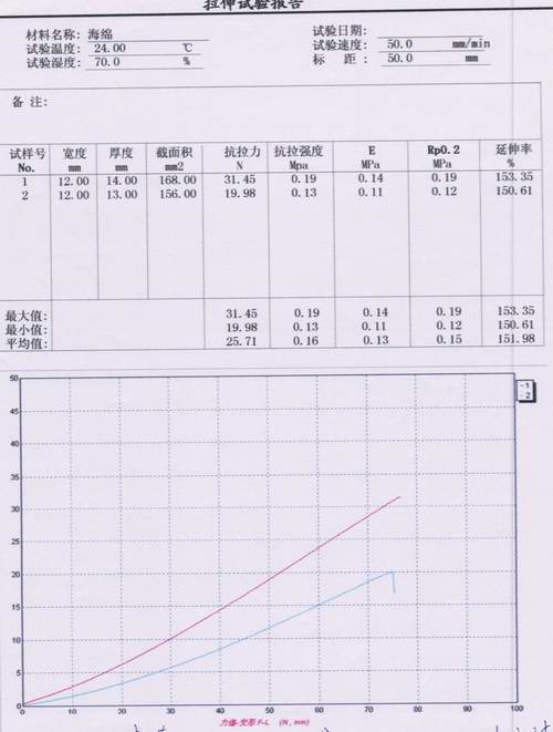海棉拉伸撕裂試驗報告內容:①抗撕力 ②抗撕強度